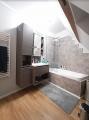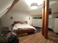 A teljes emeleten kb. 140 nm-es, nappali plusz két szobás, valamint egy dolgozóval és vendégszobával rendelkező lakás került kialakításra.